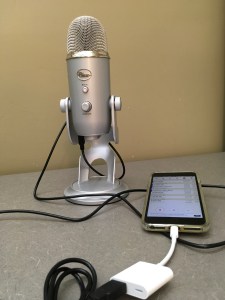 If you’re recording on your computer, you can plug the microphone right in, but for a smart phone you need an adapter. The USB mic will draw power from your phone, so it’s good to get an adapter that lets you plug in the phone while you record. For iPhone, this is Apple’s USB camera adapter (about $50). In my experience, I can get about 45 minutes of recording time for about 10% of my phone battery unplugged, but this is going to vary based on your phone and battery life.